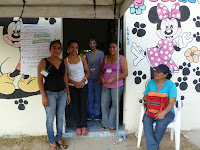 La tercera edad, the third age, is what they call being a senior citizen here in El Salvador - and come to think of it, it makes a lot more sense and poetry than "senior citizen." Last week we had a fiesta for people in la tercera edad at the Centro Arte para la Paz, complete with a band that knew how to play the old Salvadoran standbys for dancing - though when we got into rock tunes, a little later, could see that these are my contemporaries. We all danced to the Beatles back in the 60s, and we all could keep that beat going. Some segunda edad folk even snuck in to enjoy the dancing with us - Arielle on the left in the photo above is one of Peggy O'Neill's full-time volunteers this year. Great fun - there were prizes for all, including the oldest person there, a man of 99 who I often greet on the corner of my street, and the woman with most children - someone claimed she had 14, though when she stood up she only mentioned 10. Other prizes were raffled, even the two piñatas. We were served coffee and a refrigerio (a snack, the first time I met this word I had a terrible time disentangling it from refrigerator, refrigerador) and had a good time.